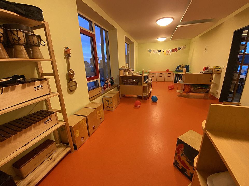 Die kindgerechten Guppen- und Funktionsräume, wie das Atelier, die Holzwerkstatt, die Lernwerkstatt sowie der Bauraum und die Küche wurden liebevoll eingerichtet und laden die Kinder ein zum gemeinsamen Basteln, Erkunden, Malen oder Kochen.