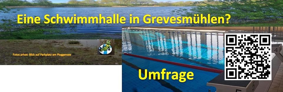 Liebe Bürgerinnen und Bürger von Grevesmühlen, Umgebung, wir möchten Ihre Meinung zu einem möglichen Bau eines Schwimmbads in unserer Stadt einholen. Ihr Feedback ist uns wichtig, um die Bedürfnisse und Wünsche der Gemeinschaft zu verstehen. Bitte nehmen Sie sich einen Moment Zeit, um an dieser Umfrage teilzunehmen. Einfach an der Umfrage teilnehmen oder dem QR-Code kommen Sie zur Umfrage. Vielen Dank für Ihre Teilnahme!