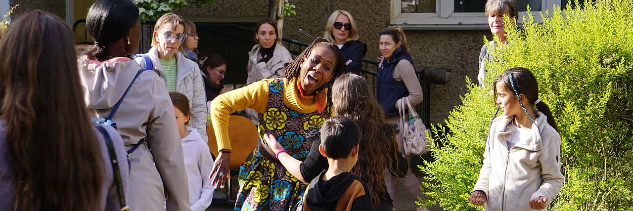 Qualifikation - Frauen mit und ohne Flüchtlingshintergrund, die selber Mütter sind und eine Aufgabe suchen, werden zu verschiedenen Themen rund um die Entwicklung und Erziehung von Kindern, über das deutsche Bildungs- und Gesundheitssystem, über örtliche Unterstützungsmöglichkeiten (Ämter und Behörden, Beratungsstellen, Jobcenter, Jugendamt usw.) qualifiziert. Dabei werden auch die Stellung der Frau in der Gesellschaft und in der Familie thematisiert, ebenso Fragen der Gewaltprävention.