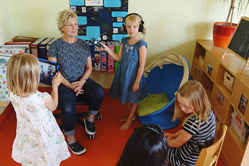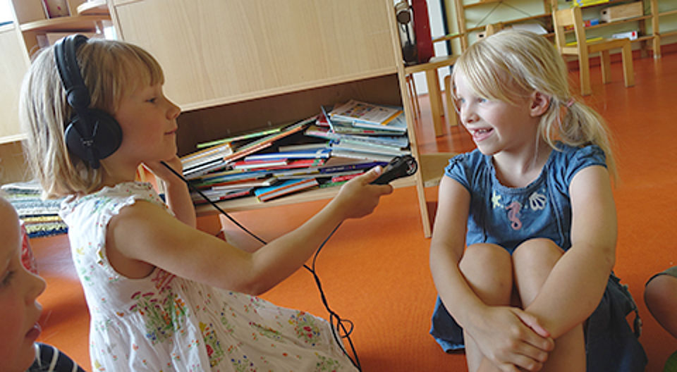Zusätzlich zum Trickfilm wurden Interviews geführt. Ausgestattet mit Tablet, Audiorecorder und Kopfhörern wurden mehrere Erzieherinnen der DRK-Kita zum Thema Müll befragt.