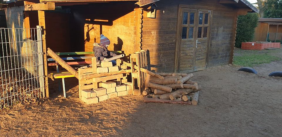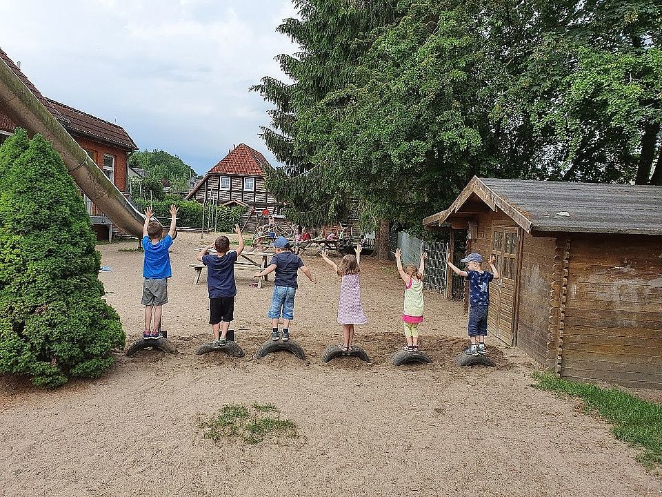 Unser Außengelände bietet den Kindern vielfältige Bewegungsmöglichkeiten.