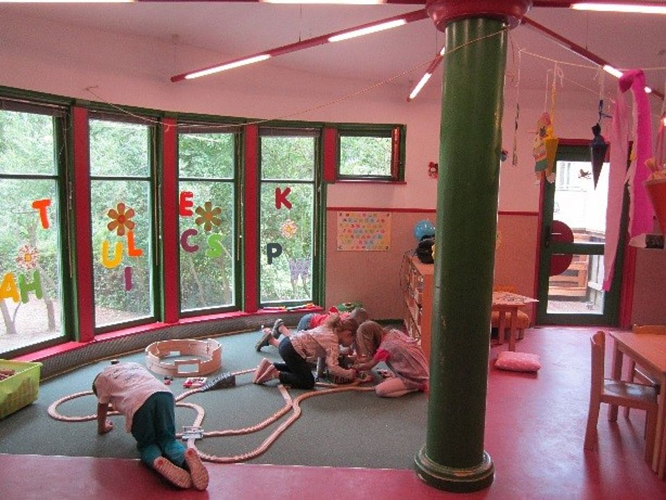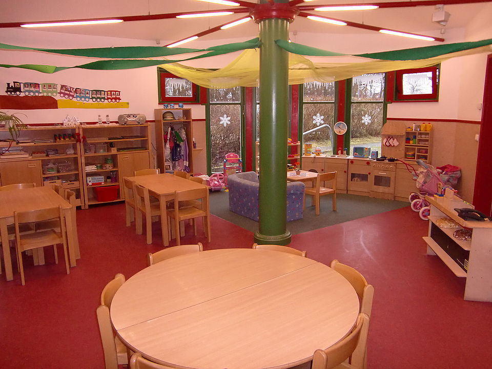 Unsere Kita bietet Platz für 64 Kinder im Alter von drei Jahren bis zum Schuleintritt. Die Kinder werden in vier altersgemischten Gruppen von sechs Erzieherinnen mit großem Engagement und pädagogischer Erfahrung betreut.