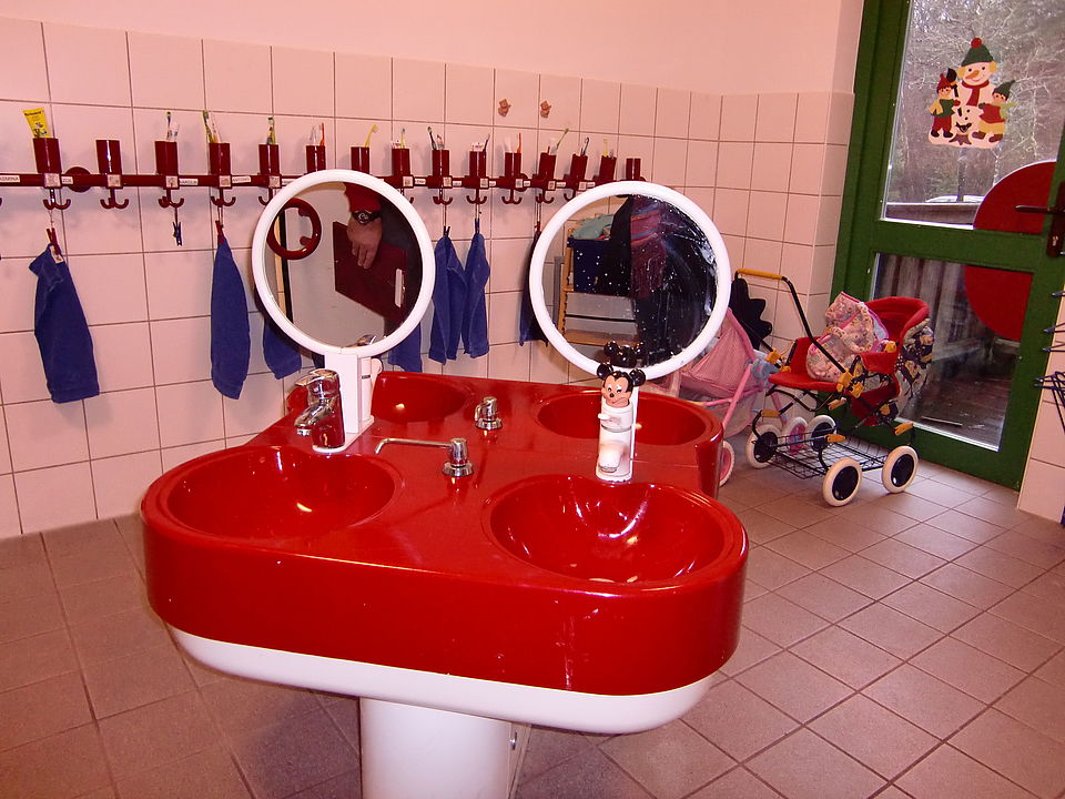 Jeder Raum hat einen Sanitärbereich, der vom Gruppenraum erreichbar ist.