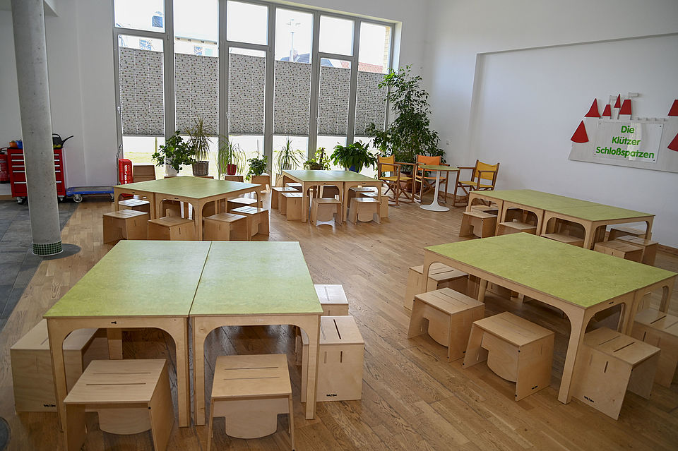 Ob im Garten, auf den Fluren oder in der Mensa: Unsere Räume laden zum Entdecken, Gestalten und Forschen ein. Nachhaltigkeit und Verantwortung spielen auch im Kita-Alltag eine wichtige Rolle - etwa beim Backen, bei Naturprojekten oder im grünen KinderGarten.